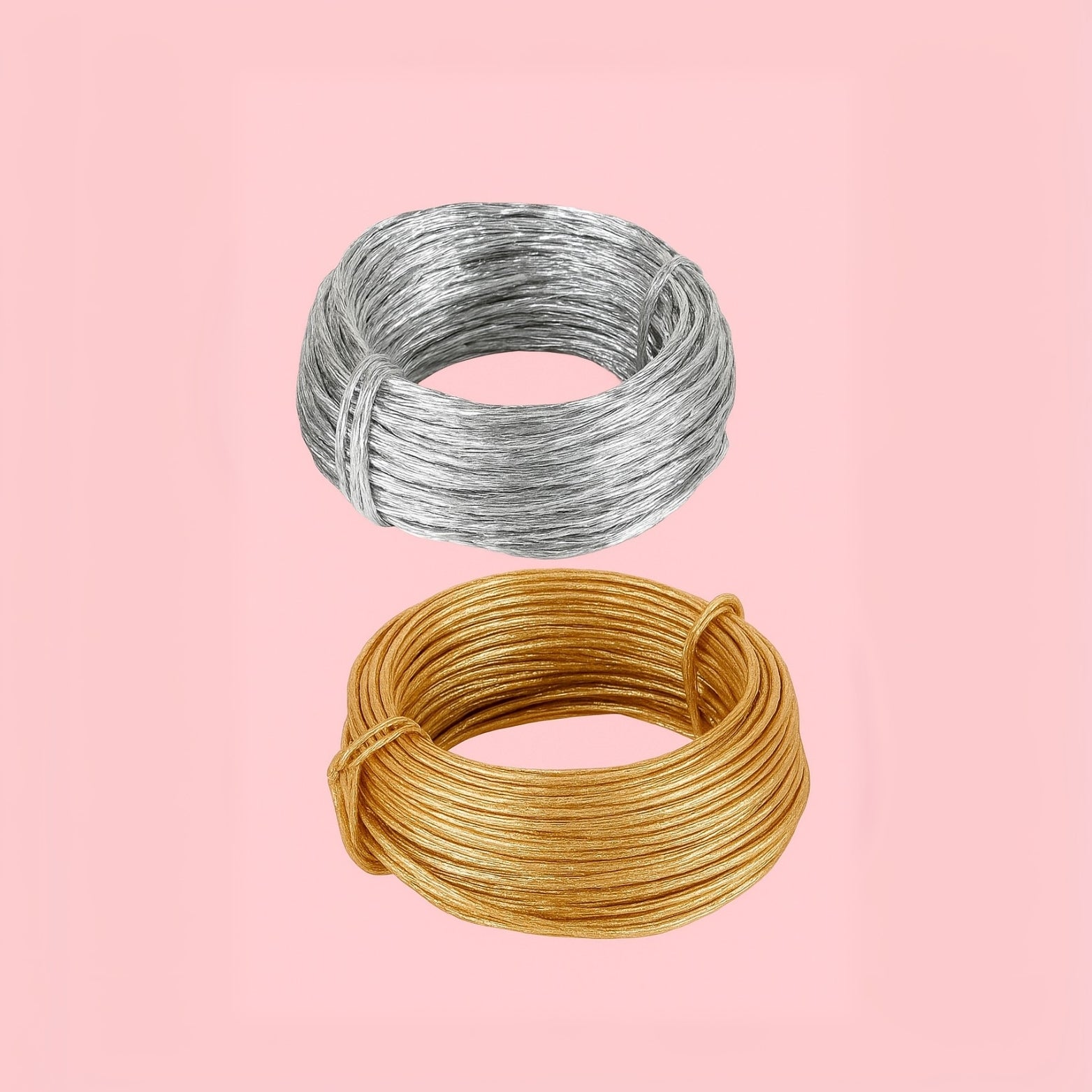 - Alambres empapelados decorativos en color oro y plata para darles ese toque especial a tus diseños florales. Lo suficientemente fuerte como para envolver firmemente sin romperse.