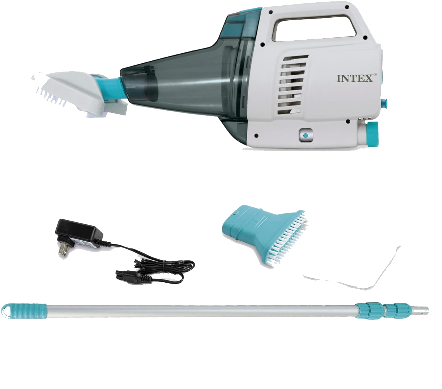 -Aspiradora manual con batería recargable INTEX para desincrustar y succionar la suciedad que se encuentra en el suelo, las paredes, las esquinas y los bordes de tu piscina