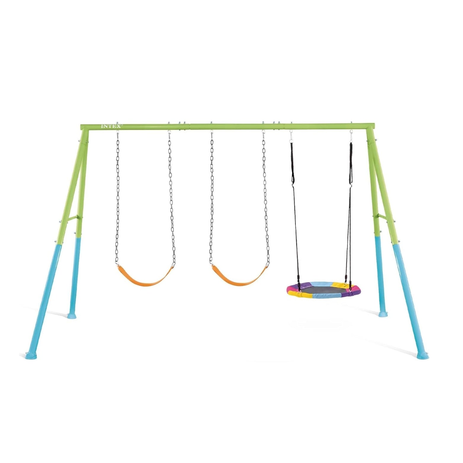Convierte tu jardín en un espacio de juego épico con el Columpio Intex 44133. Ideal para niños de entre 3 y 10 años, este columpio combina dos asientos convencionales con un balancín tipo nido para ofrecer múltiples formas de divertirse.