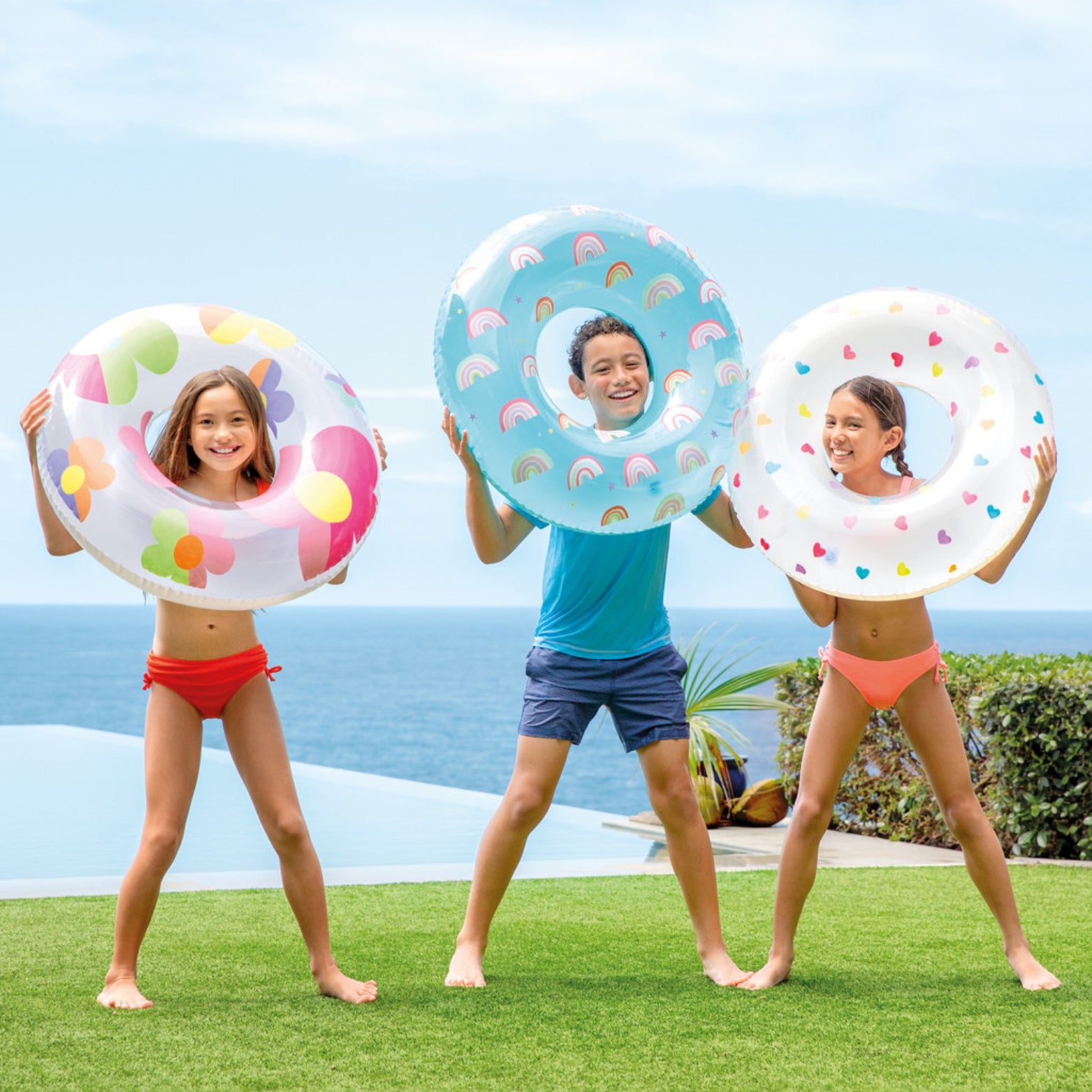 Este irresistible flotador inflable no solo es un accesorio elegante, sino también un ayudante práctico y seguro para los pequeños amantes del agua.