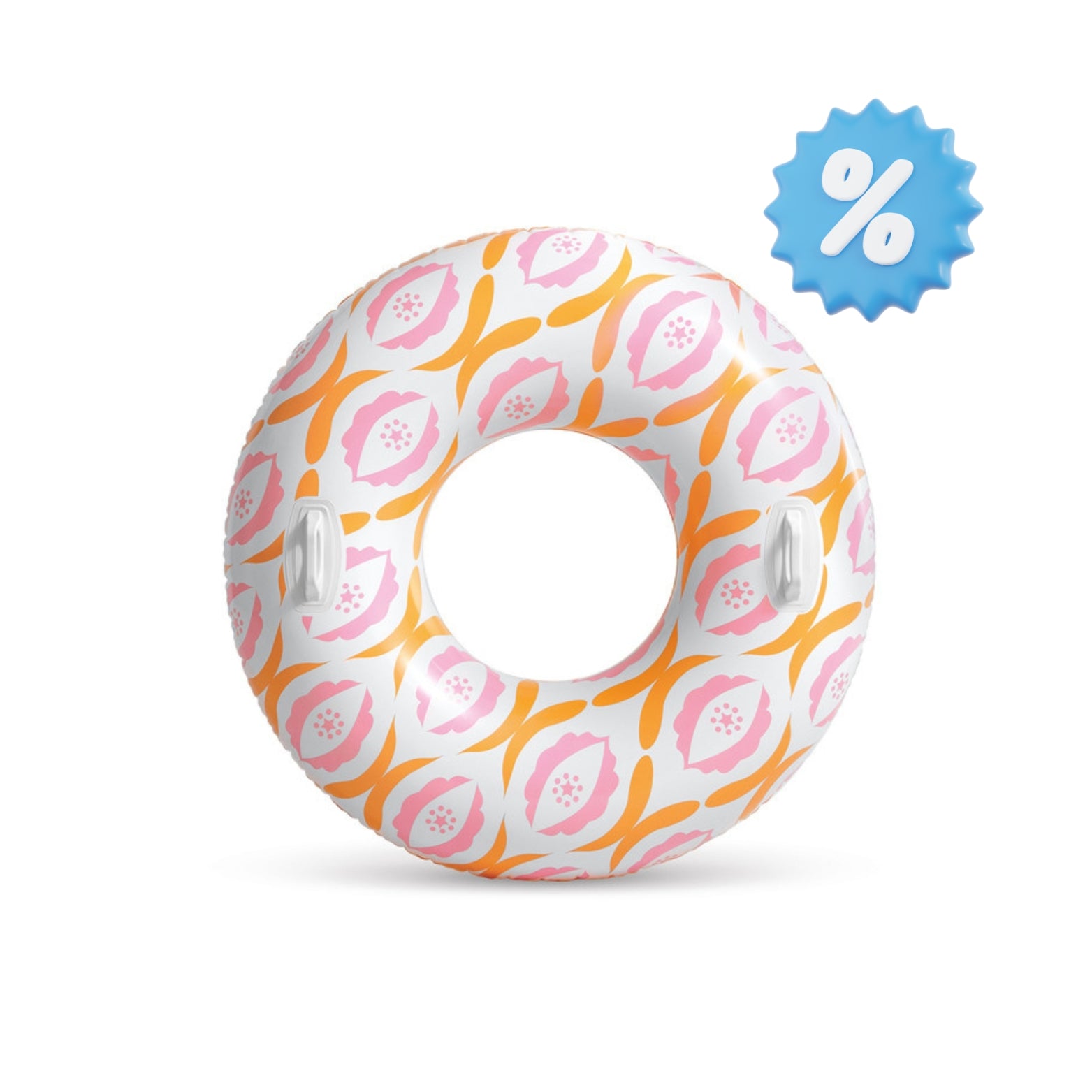 -Diseño: el flotador se compone de una cámara de aire con diseño moderno multicolor rosa y naranja de estilo vintage. Tiene agujero central y cuenta con dos asas de sujeción para mayor seguridad